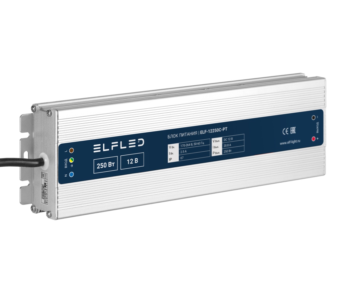 - Блок питания герметичный компактный ELF, 12В, 250Вт, металл, IP67