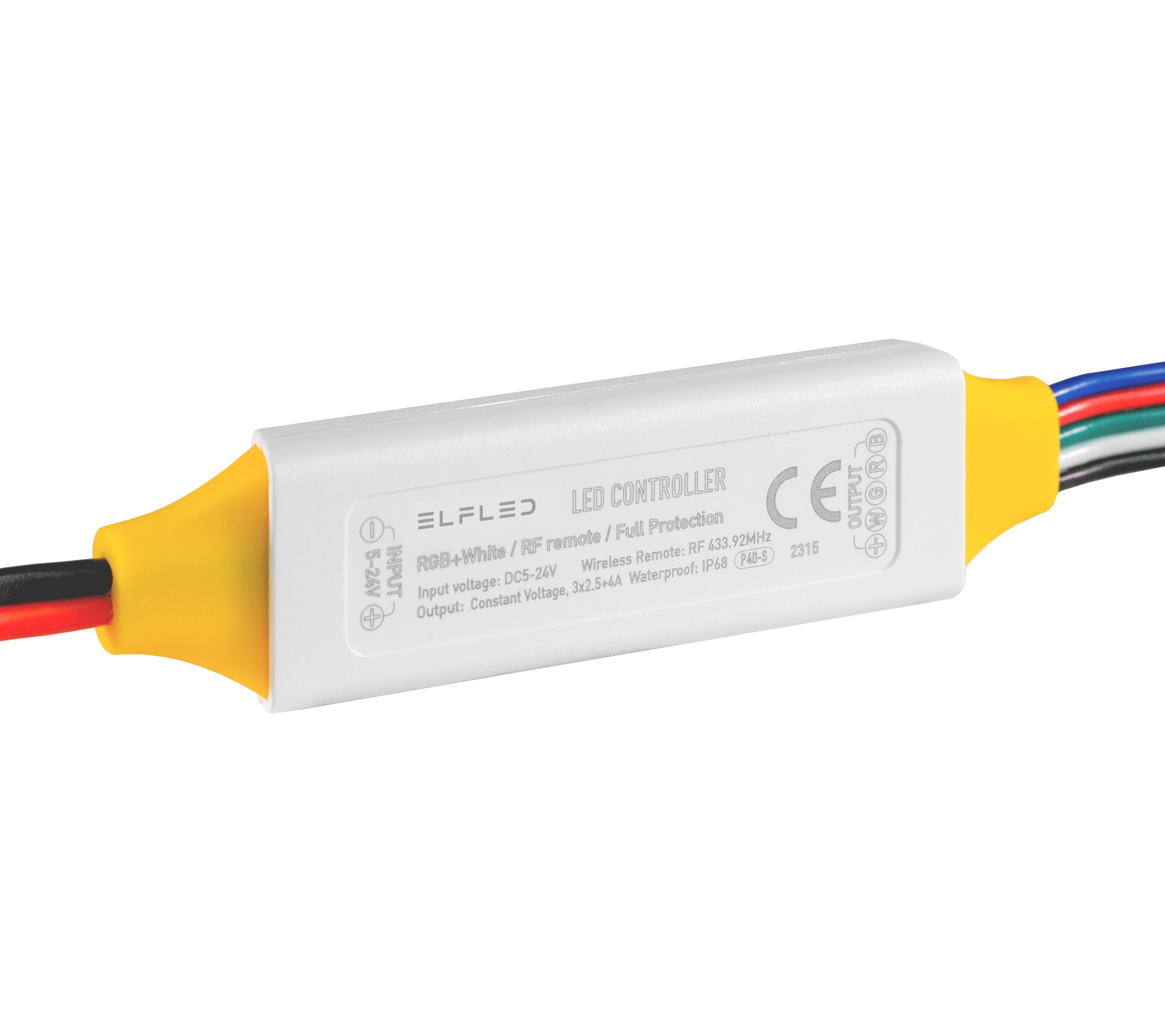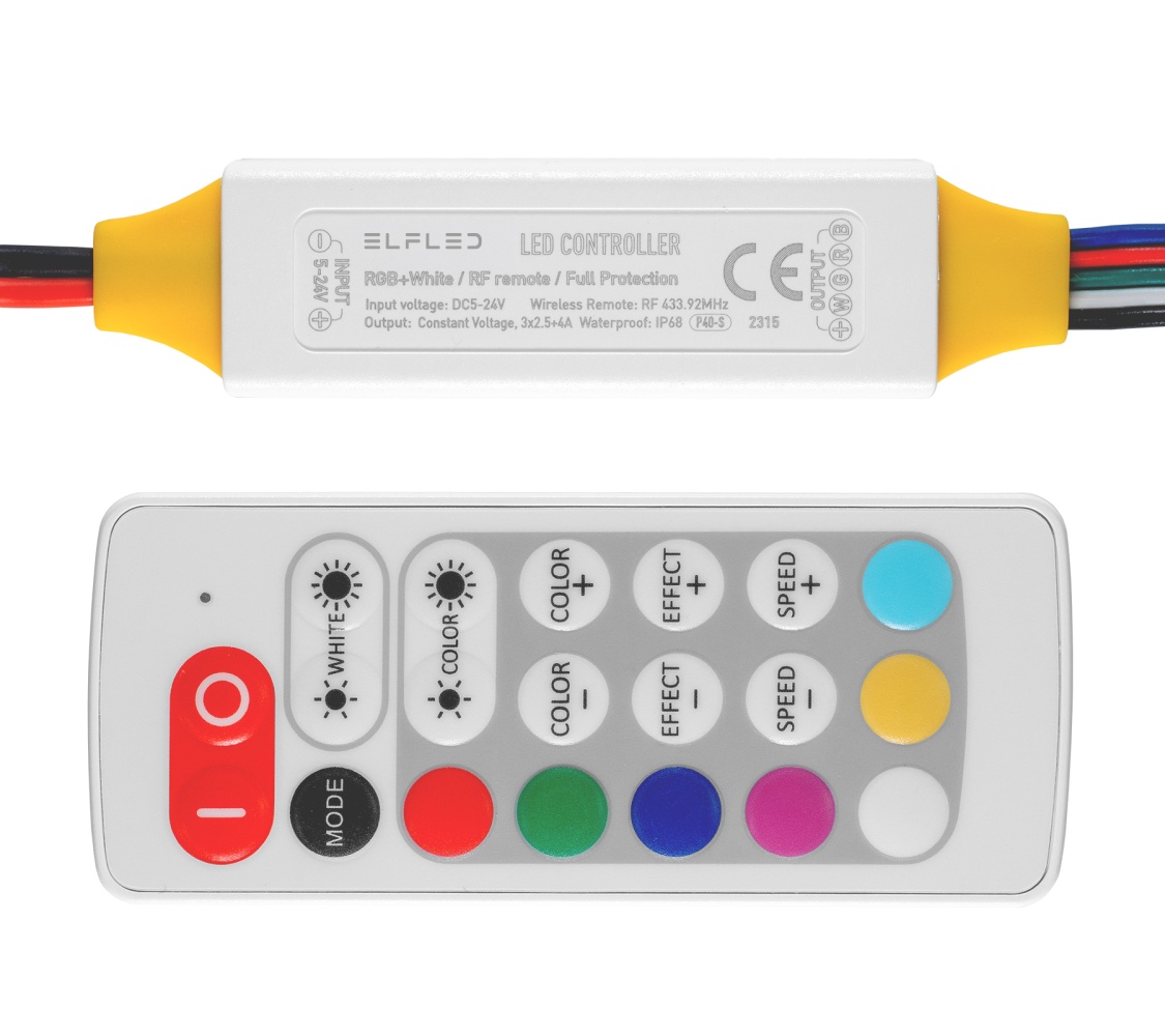 RGBW-контроллер ELFLED P40 с радиоуправлением, 5/24В, 2.5A/канал+4A, IP68