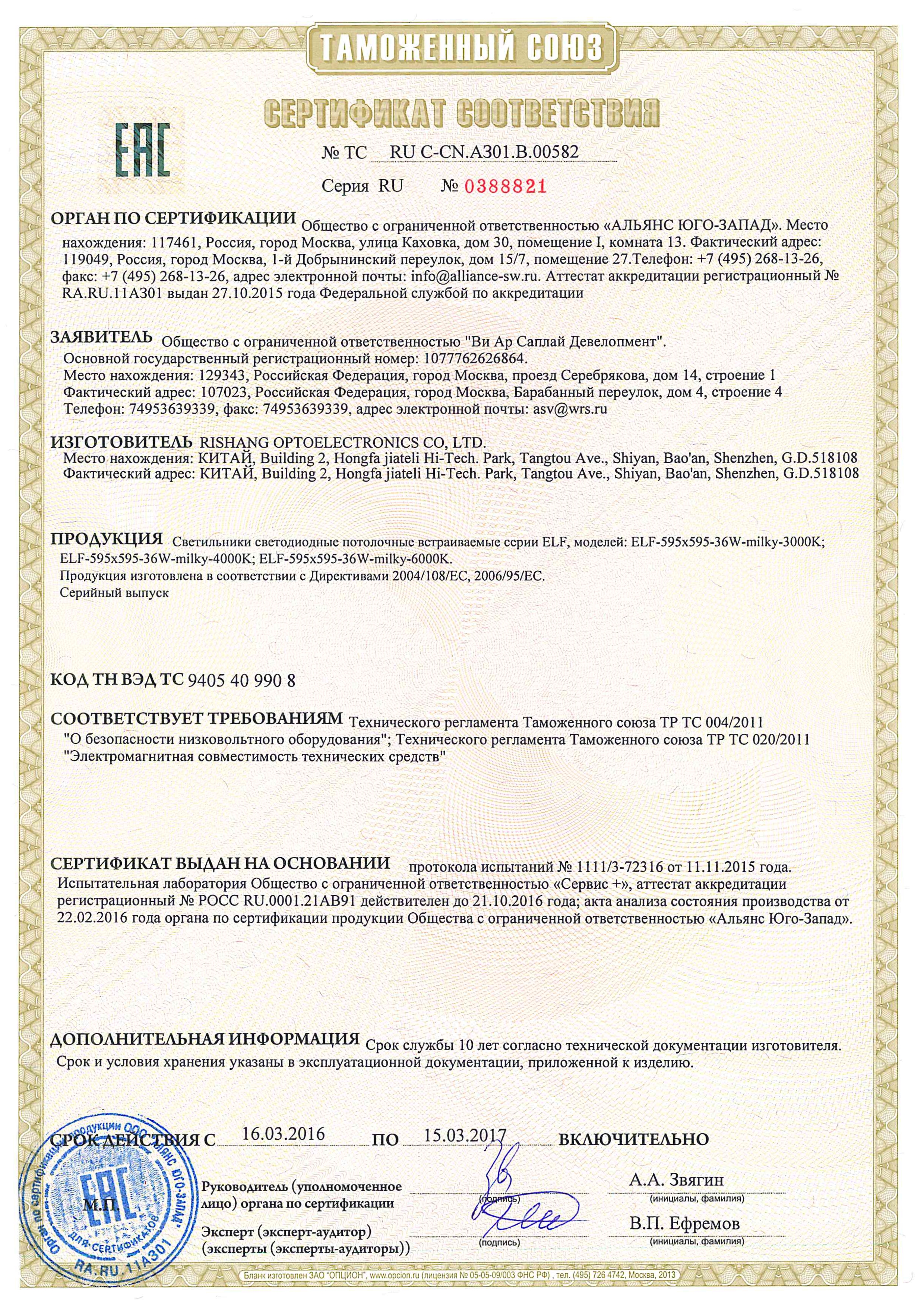 - Светильник светодиодный потолочный встраиваемый ELF (595х595)