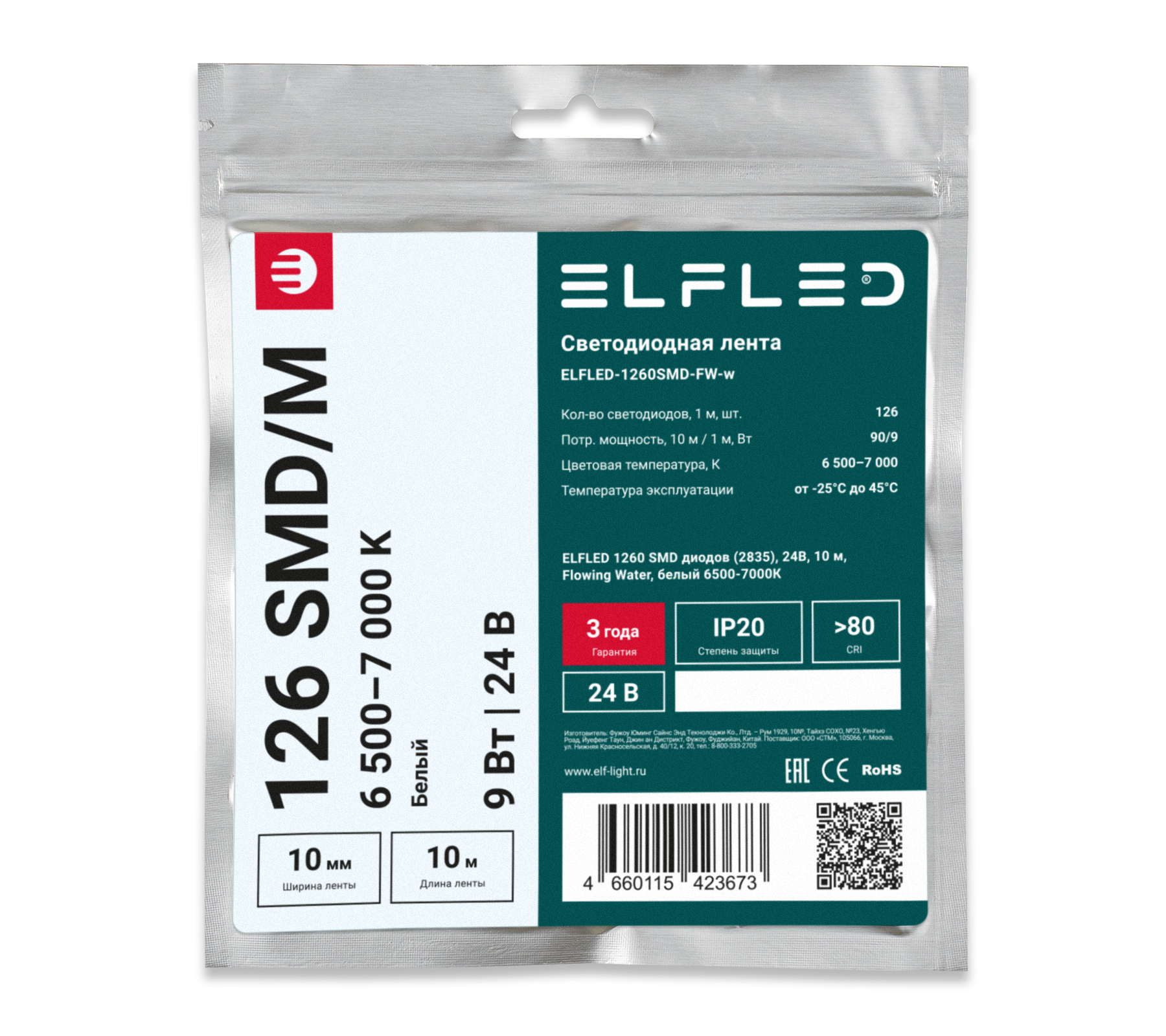 - Лента светодиодная ELFLED 1260SMD диодов (2835), 24В, 10м, Flowing Water, белый 6500-7000К