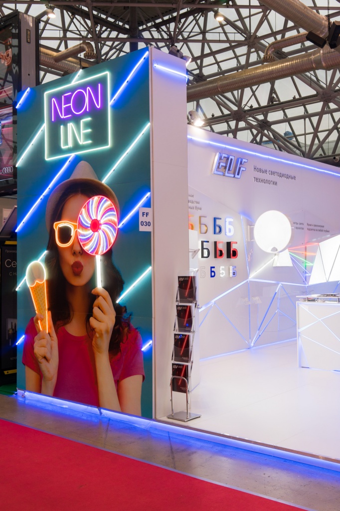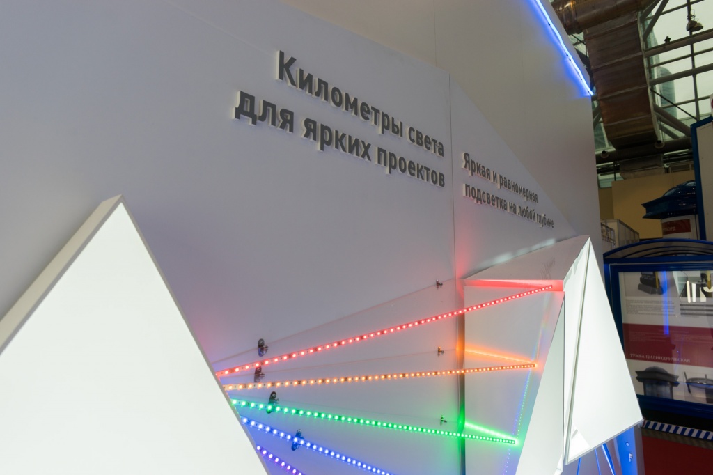 На нашем стенде были показаны все современные светодиодные наработки компании, одной из самых популярных экспозиций стала демонстрация гибкого неона (NeonLine) или «девочка», как ее окрестили посетители. Юная леди подсвеченная гибким неоном произвела впечатление как профессионалов, так и на простых посетителей выставки. Столько публикаций в соц. сетях не набирал ни один наш стенд.